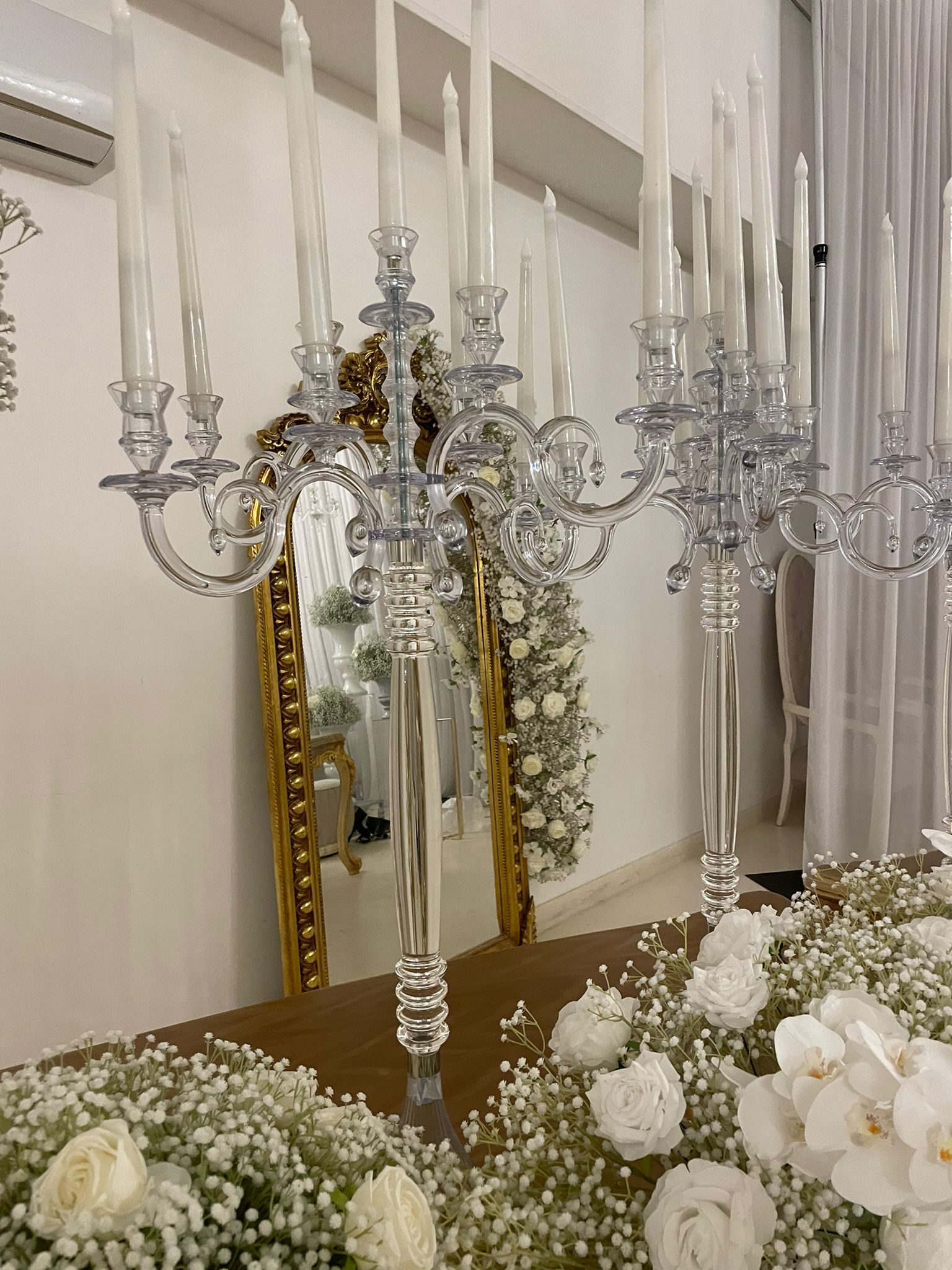 Centre de table chandelier plexiglas. chandelier transparent 8 branches. Bougies led fournis avec piles. Idéal décoration romantique