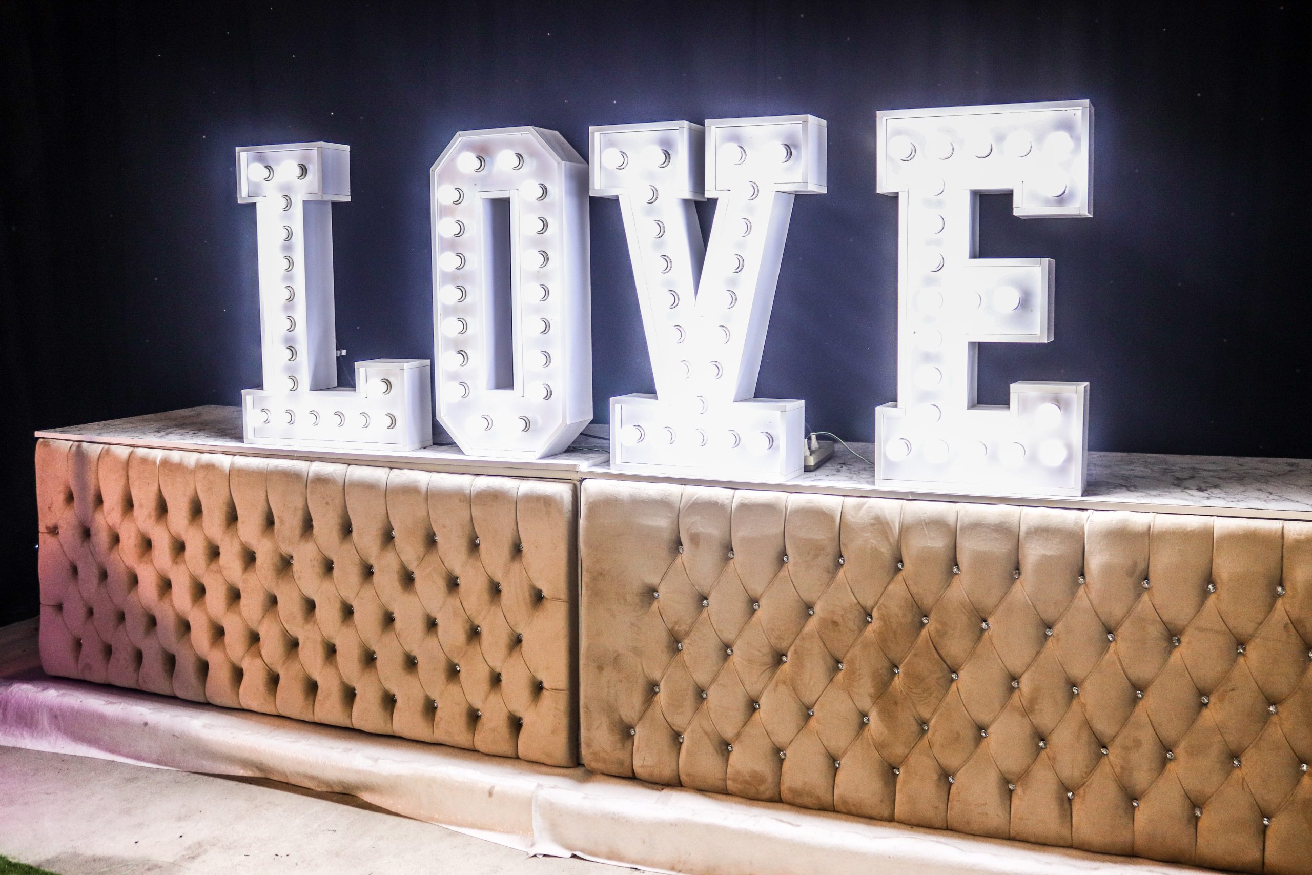 Buffet capitonné champagne 2 m x 1 m.