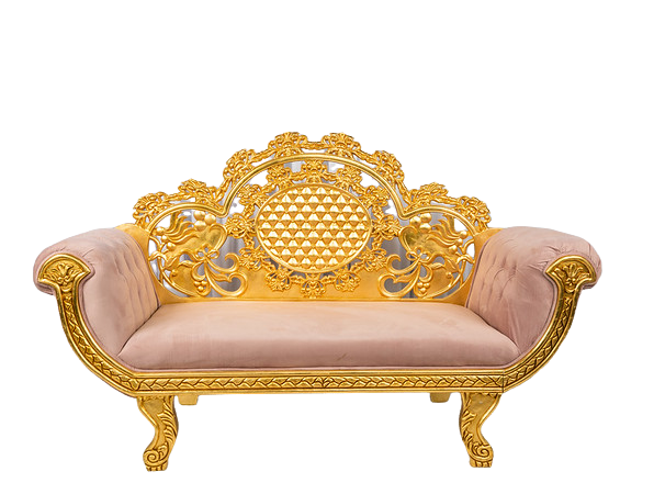 Banquette deux places en velours de soie, bois massif et véritable feuille d’or, aussi stylée que confortable. Les mariés seront bien installés, profiteront de leurs soirées en toute tranquillité.