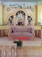 La banquette Raouf est très élégante très chic, elle saura mettre en valeur votre évènement quel qu’il soit. La dorure de son bois massif sculpté se marie parfaitement au tissu velours de soie, ce qui fait ressortir encore mieux le style oriental.