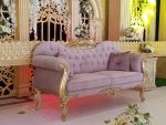 Magnifique banquette deux places, idéale pour sublimer tous vos heureux événements tels que les mariages, anniversaires, cocktails … Sculptée à la main en bois massif et en velours de soie, la banquette Raouf classe et imposante, existe en rose gold/ Nude & Or ou couleur champagne également.