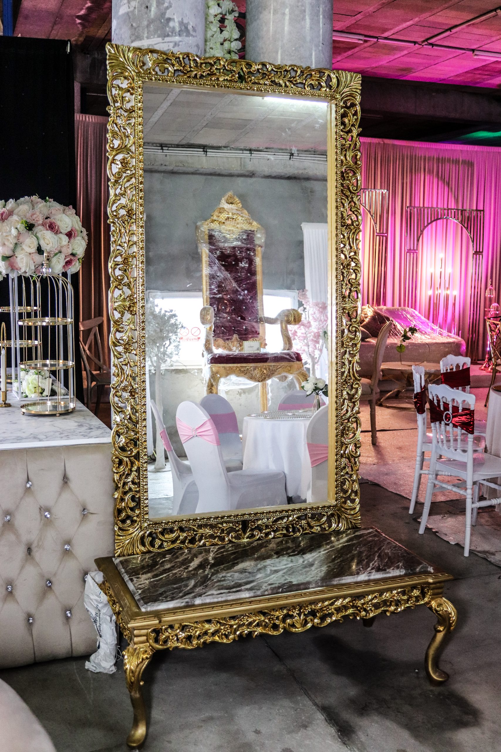 Console baroque et miroir or