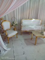 Trône louis 16 finition or.  Mobilier de style empire sculpté main, bois massif recouvert de véritables feuilles d’or. Idéal pour la décoration de vos espace mariés ou coin photos.