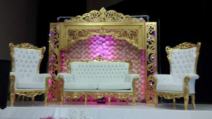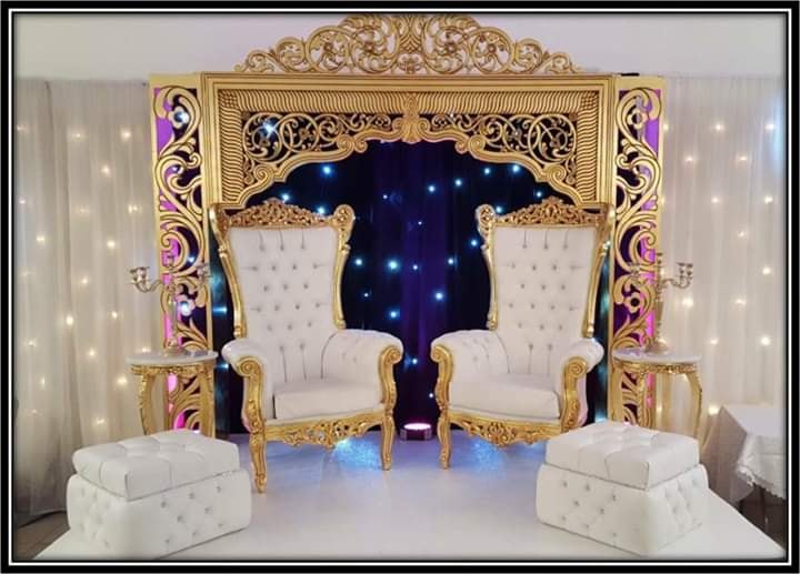 Formule Byzance or décor oriental avec mobilier baroque idéal pour cérémonie mariage.incluant:1 fond arabesque or et canapé ou trône de votre choix